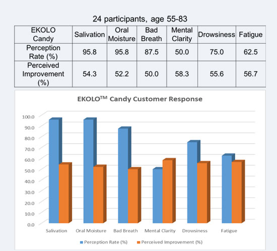 EKOLO™ Vital Essence Candy was evaluated by 24 participants aged 55 to 83 (male-to-female ratio: 14:10).